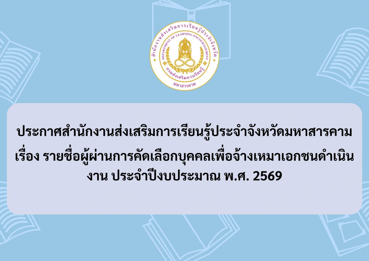 ประกาศสำนักงานส่งเสริมการเรียนรู้ประจำจังหวัดมหาสารคาม