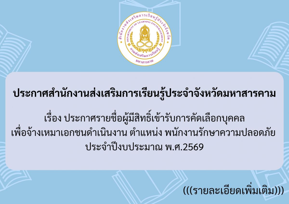 # สำนักงานส่งเสริมการเรียนรู้ประจำจังหวัดมหาสารคาม Mahasarakham Provincial Office of Learning Encouragement
